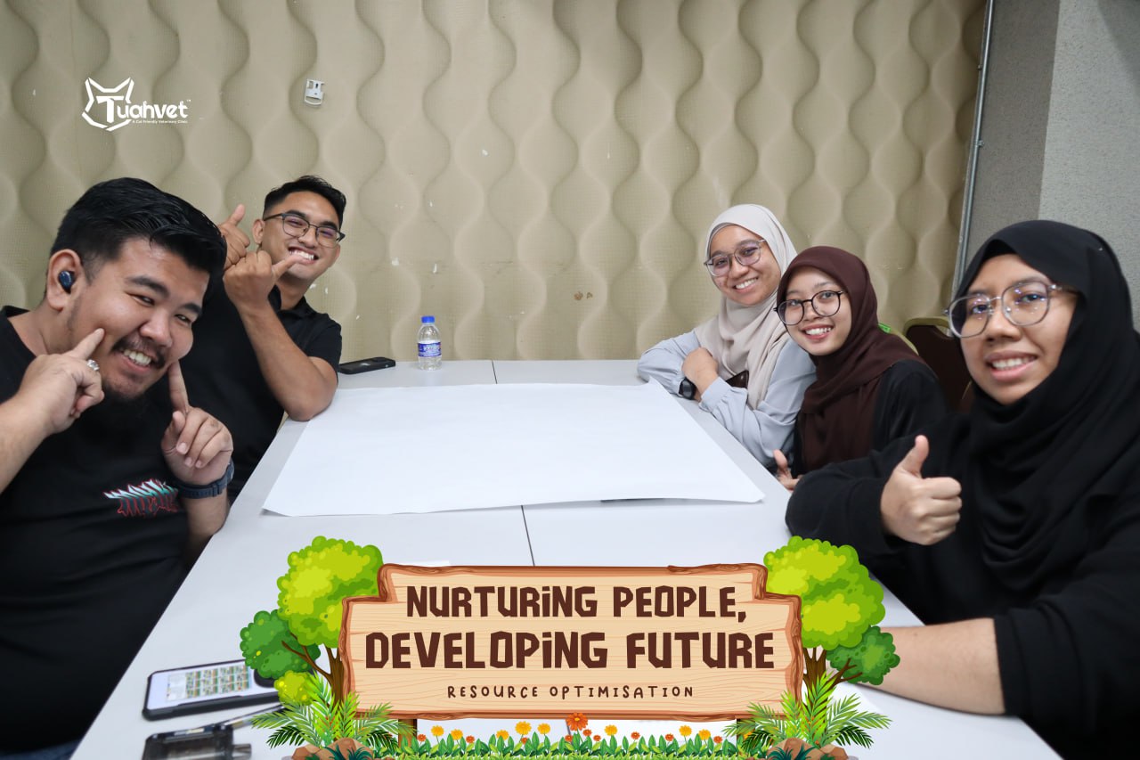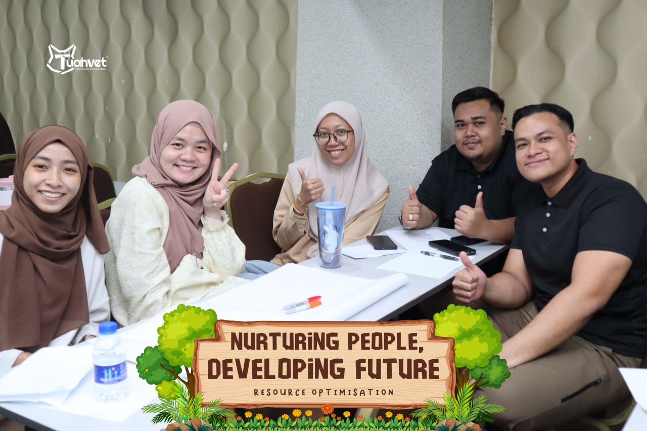 Sementara itu, Jabatan Sumber Manusia, yang diwakili oleh Tuan Fairuz Nizam, turut menyentuh tentang peluang perjalanan membina kerjaya dan akan terus komited untuk membantu dalam menggilap bakat serta potensi setiap ahli pasukan agar mereka dapat berkembang maju di Tuahvet. Fokusnya adalah merancang latihan dan peluang peningkatan kemahiran untuk ahli pasukan, menjadikan Tuahvet platform yang terus mengasah potensi insan, selari dengan tema mengoptimumkan sumber dan pembangunan masa depan.