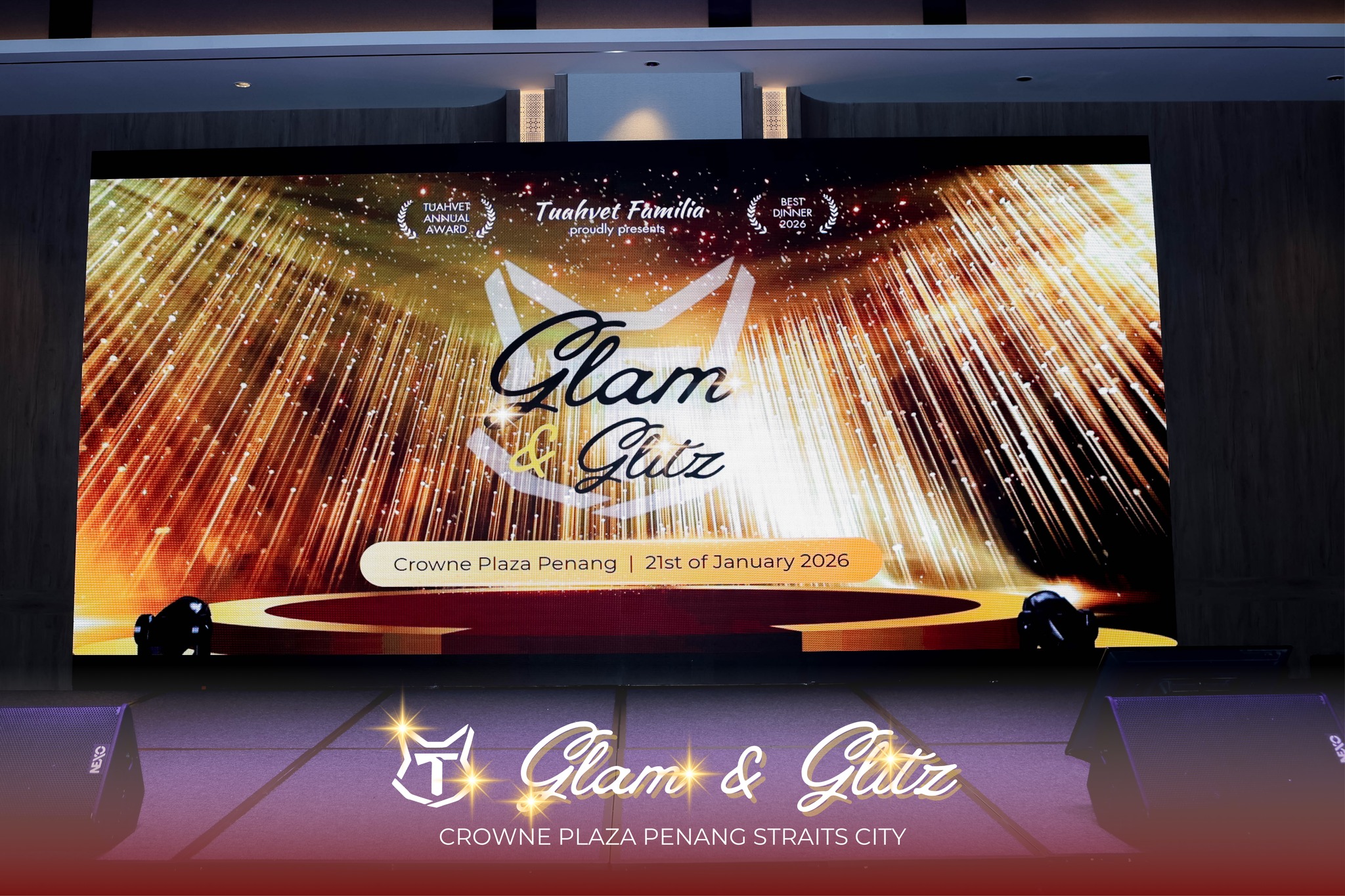 Tema Glam & Glitz jelas terpancar melalui busana mewah dan elegan yang digayakan oleh para tetamu, menjadikan malam tersebut bukan sahaja formal tetapi juga penuh glamor. Photobooth oleh Ruang Kenangan turut disediakan, lengkap bersama polaroid strip, membolehkan tetamu merakam momen indah semasa Tuahvet Annual Dinner ini.