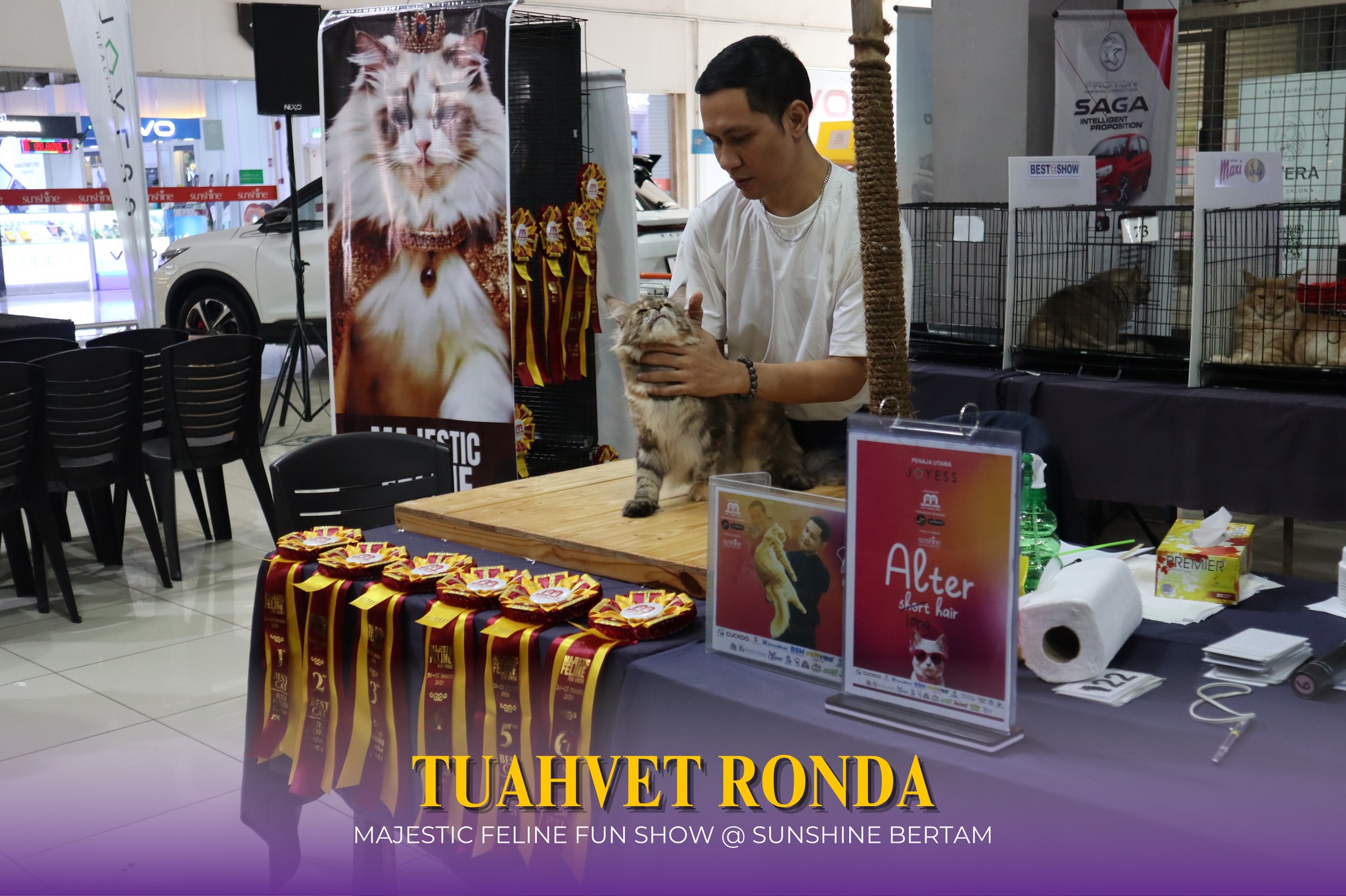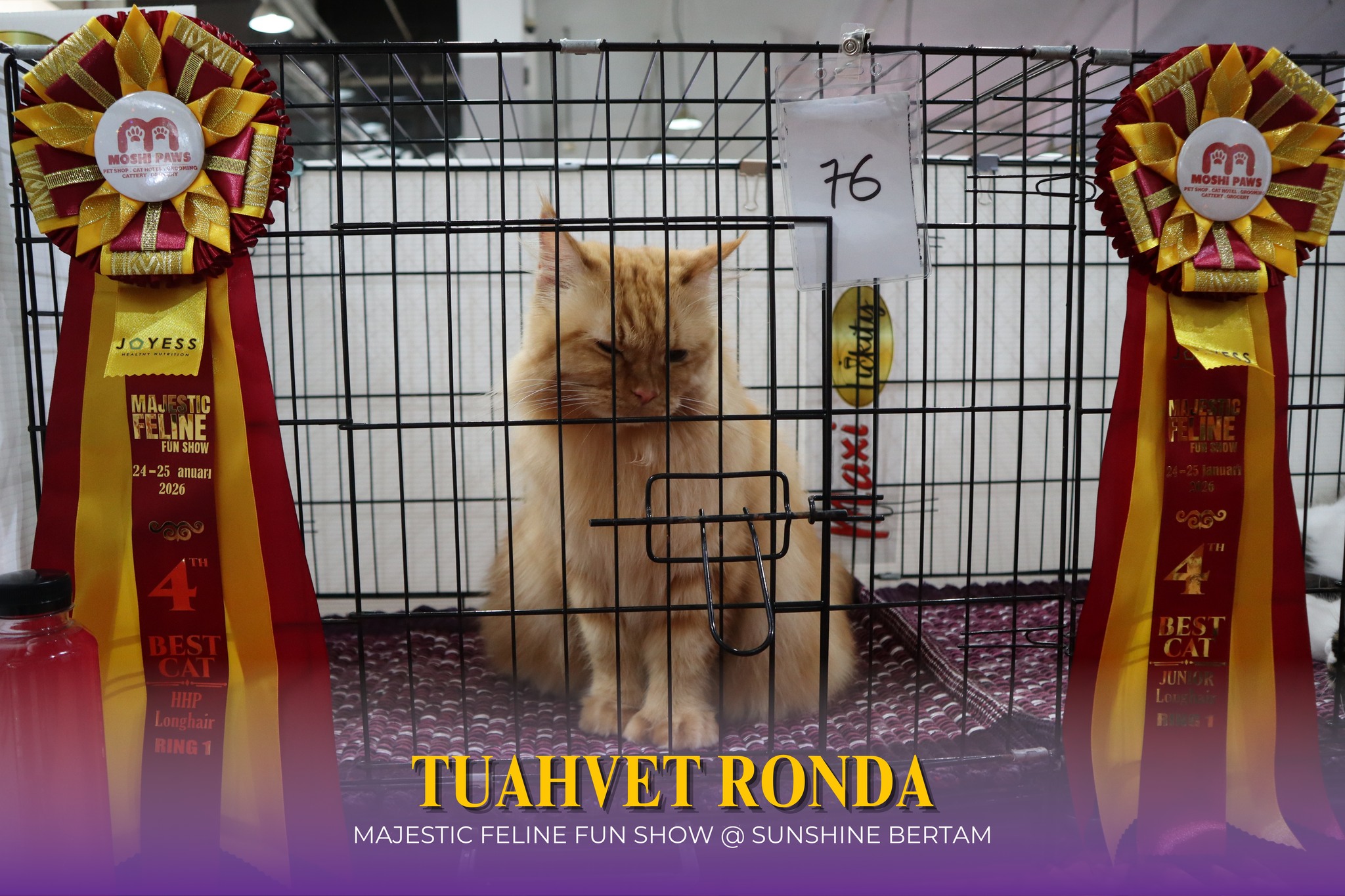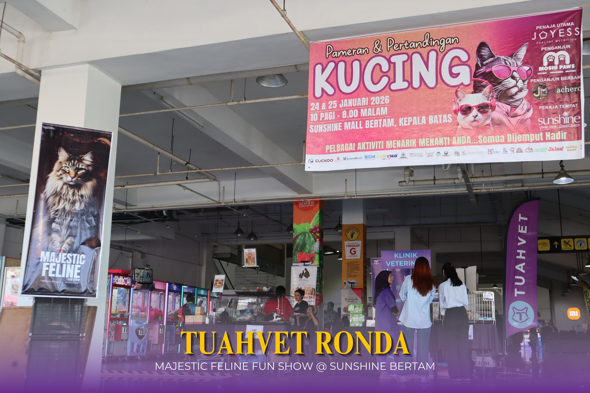 Tuahvet berpeluang untuk menyertai program Majestic Feline Fun Show yang berlangsung selama 2 hari pada 24 dan 25 Januari 2026 ini diadakan di Sunshine Bertam, Kepala Batas. Tuahvet sangat berbesar hati melihat kehadiran para pencinta kucing membuktikan bahawa minat terhadap si bulus semakin berkembang, sama ada melalui penyertaan pertandingan mahupun singgah ke booth Tuahvet.